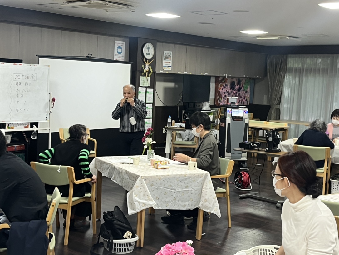 ライフサポートひなたで「健康カフェ」を開催し、近隣の方20名にご参加いただきました。認知症の基礎知識や日常でできる予防のヒントをお伝えし、やさしい健康体操で気持ちよく体を動かしました。会の後半には、ひなたの食事を召し上がっていただき、栄養の工夫や食の楽しみについてもご紹介しました。