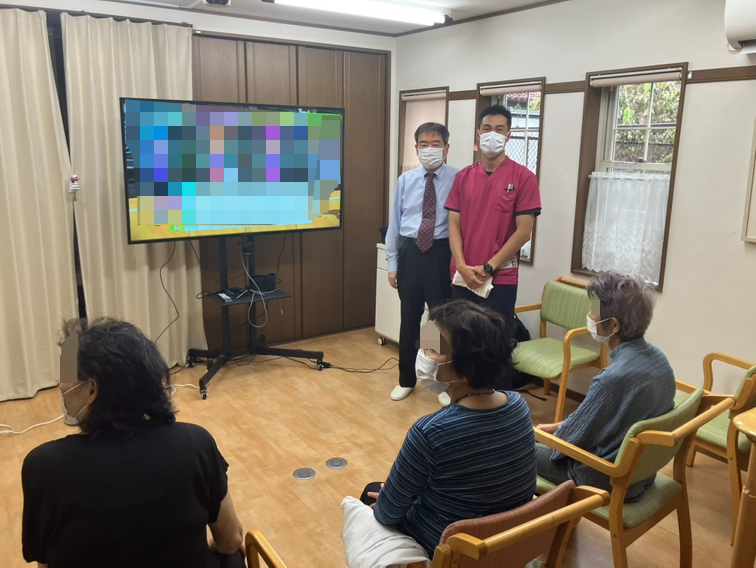 前半は先生より介護予防の基本についてわかりやすい講演、後半は理学療法士指導でe-スポーツを活用した体操を体験。笑顔と汗があふれる時間になりました。