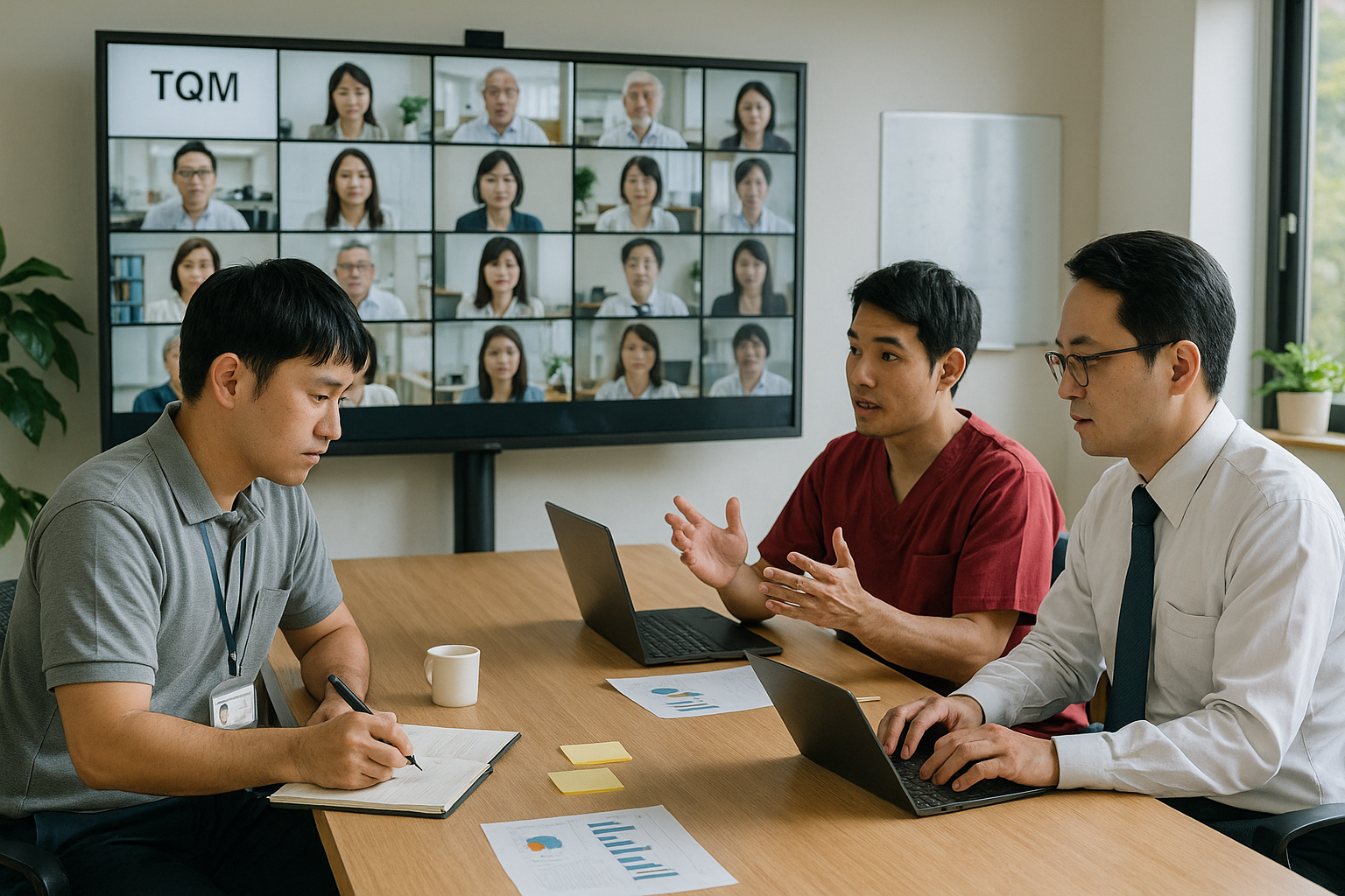 健育会グループの病院・施設が参加し、TQM(総合的品質管理)の振り返りを目的としたWebミーティングを開催しました。現場の改善事例や課題、データ活用の工夫などについて活発な議論が交わされました。共有された気づきをもとに、今後も見える化と標準化を進め、ケアと業務の質向上に取り組んでまいります。